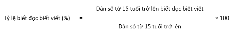 Tỷ lệ biết đọc biết viết là số người từ 15 tuổi trở lên biết đọc biết viết tính trên 100 người trong tổng dân số từ 15 tuổi trở lên.