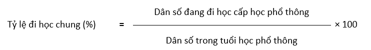 là số học sinh đang tham gia vào một cấp giáo dục phổ thông (không kể tuổi) tính trên 100 người trong tuổi đến trường của cấp học đó.